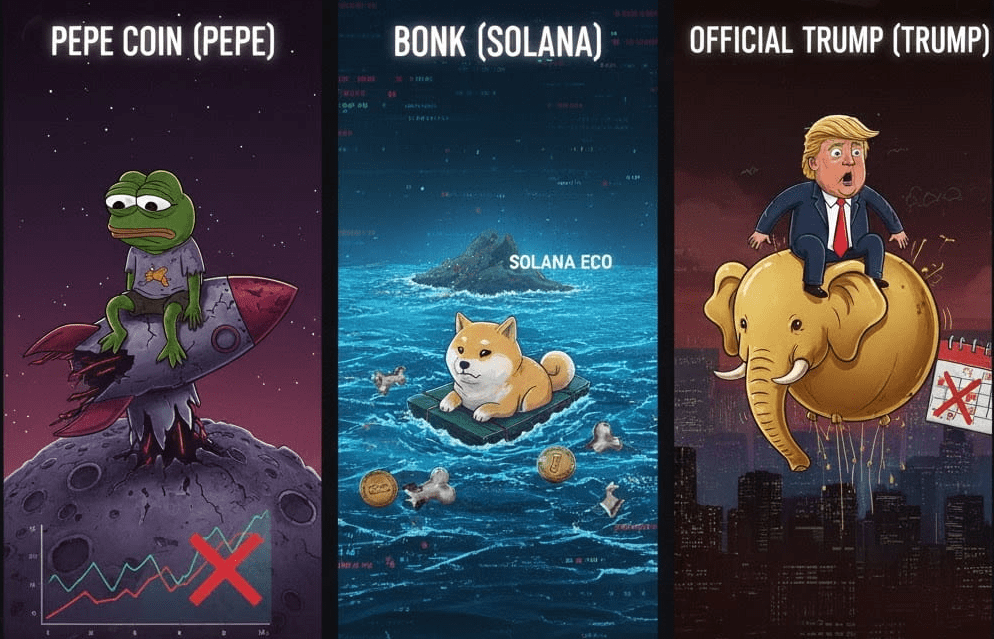🔹The meme coin at the end of 2025 has witnessed a brutal cleansing, with many projects that once thrived recording a decline of 65% to 80%, turning many dreams of transformation into massive losses