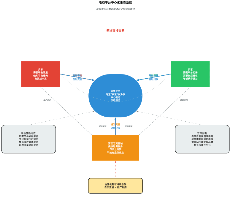 This was the dilemma faced by early e-commerce traffic stations: they had to maintain good relationships with platforms, sellers, and buyers. Sellers needed third-party traffic stations to enhance their competitiveness, while buyers wanted to get discounted prices.