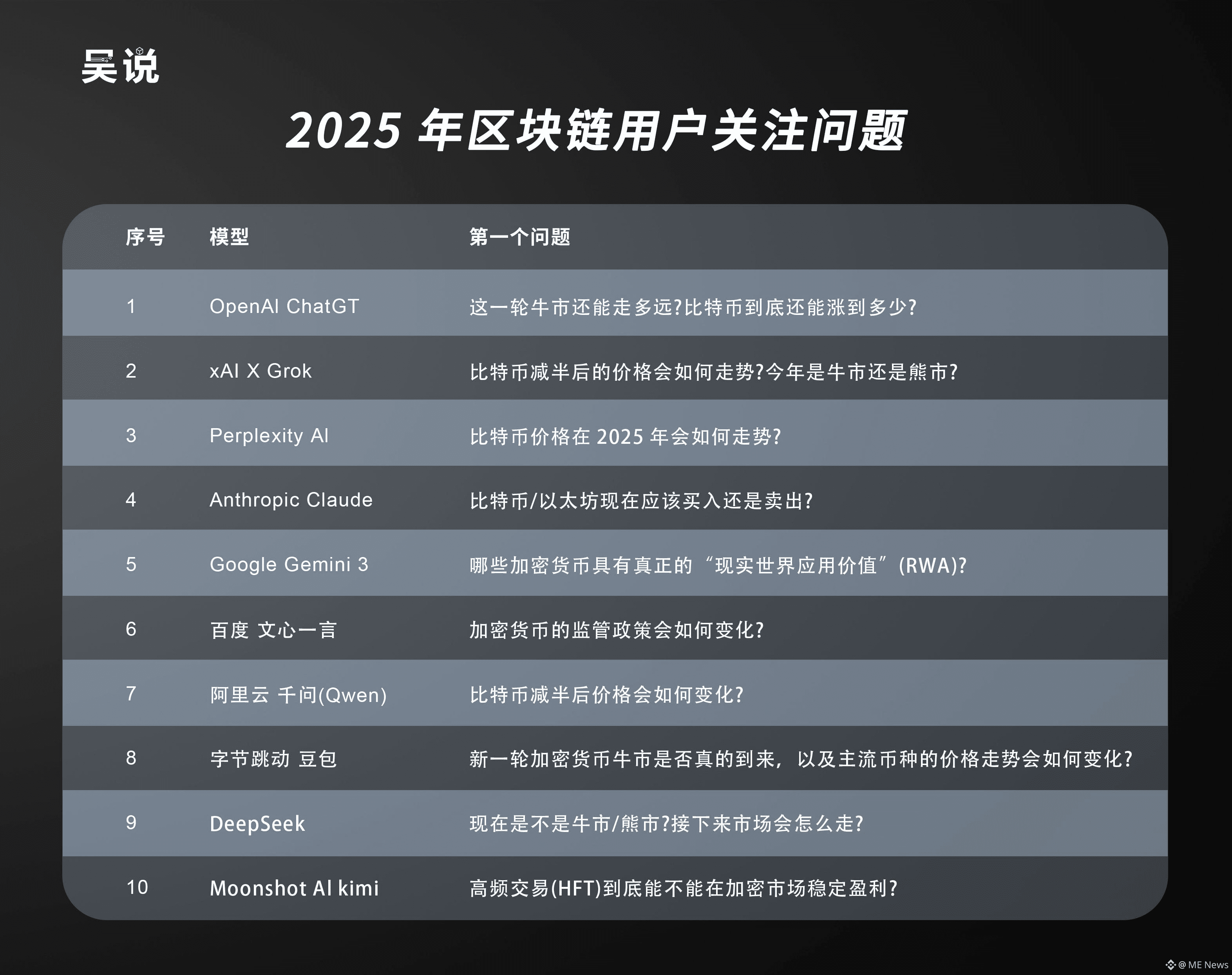 2025 年加密用户最关心什么?我们通过 AI 大模型完成了一次用户调研,调研方式是向不同大模型问同一个问题:“2025 这一年用户问得最多的三个关于加密货币的问题是什么?”