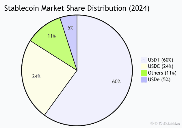 ● USDT凭借先发优势和广泛的交易所支持,占据约60% 市场份额,成为市场基准