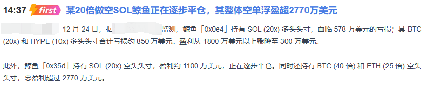 Today's most explosive news is definitely the 'life and death showdown' of these two whales. One whale aggressively leveraged 20 times on SOL long positions, resulting in a price drop below $121, directly leading to a floating loss of $5.78 million. Coupled with positions in BTC and HYPE, total profits were halved from $18 million to $3 million... Meanwhile, the other whale precisely shorted, also with 20 times leverage, making a huge profit of $11 million, and is now slowly closing positions to secure profits.