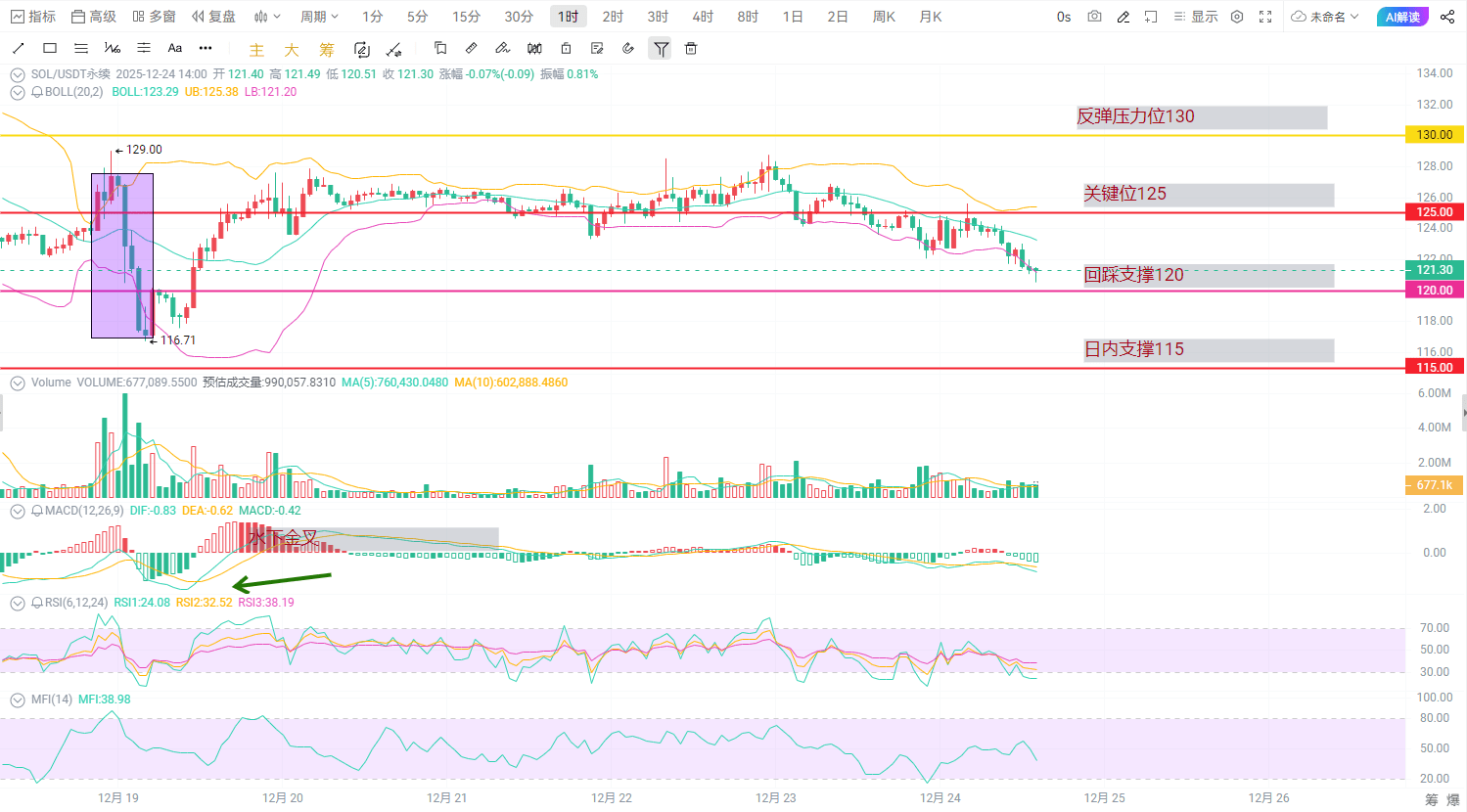 If you want to bottom-fish: You can wait for the price to stabilize above 125, and for the RSI to rebound to around 50 before considering light entry.