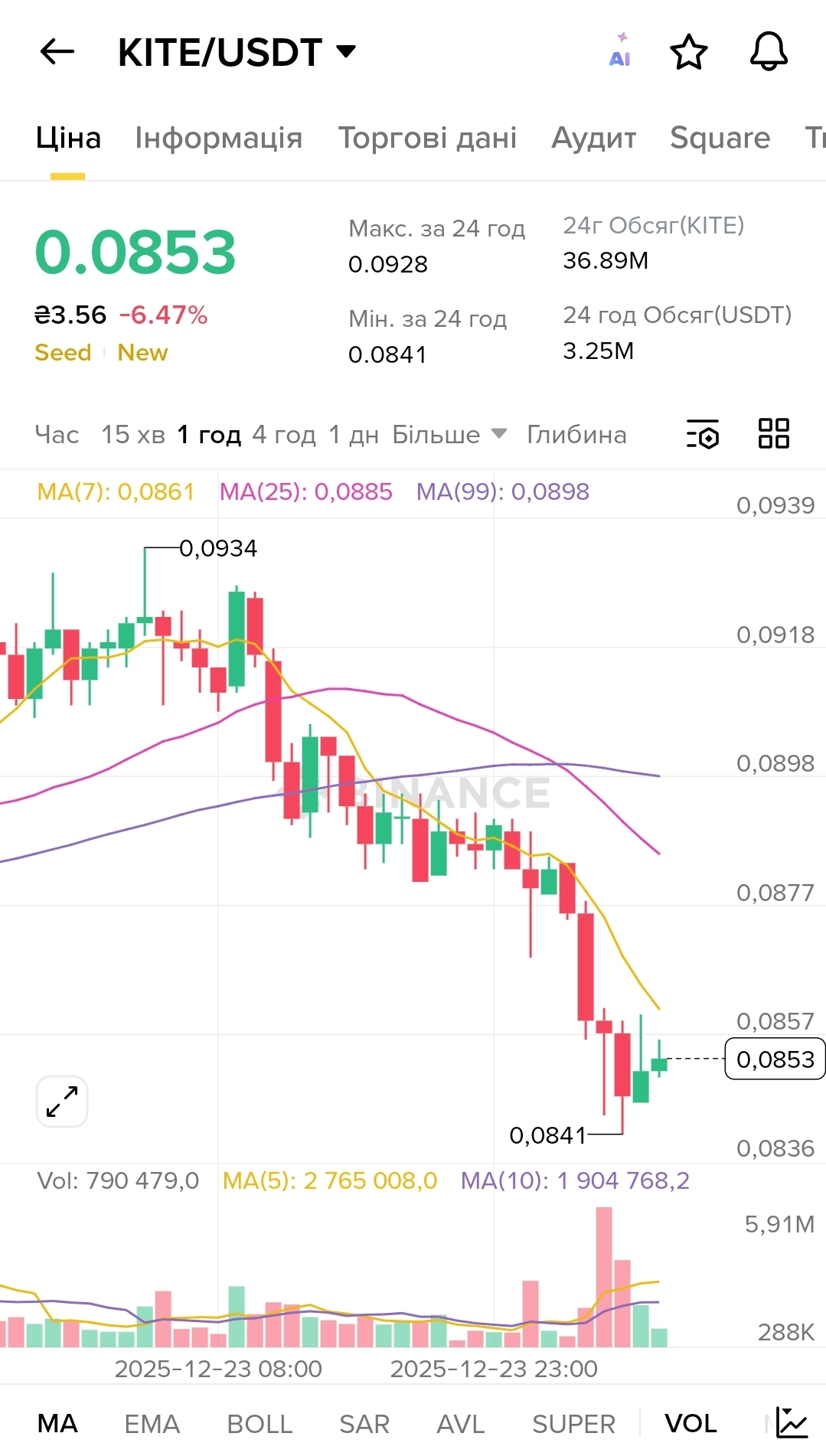 Price $KITE $0.0853, -6.47% — a big red day. The chart is flying down, the minimum touched $0.0841, and I am sitting and watching this. Do you know what I feel? Not panic. Curiosity. Because what is happening now is the best test for any project. When everything is falling, you see the real picture. Who panics. Who sells. Who holds. And most importantly — does what they are building work, regardless of the price.
