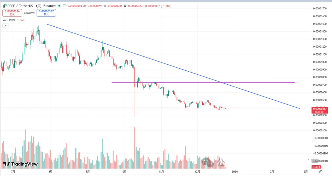 $PEPE: It has already been extremely oversold, and the price is about to touch the support level from the last sharp drop. The risk of positioning in this oversold region is low, and it is expected to welcome a 1-3 times rebound; it can be monitored.