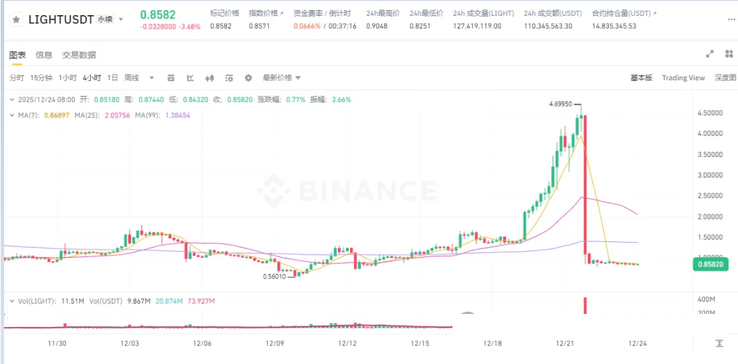 $LIGHT: After a few days of rise, it faced a big bearish candle; now no one dares to touch the rising altcoins, and even if one makes a lucky profit, it can easily get carried away, ultimately losing both principal and profit.