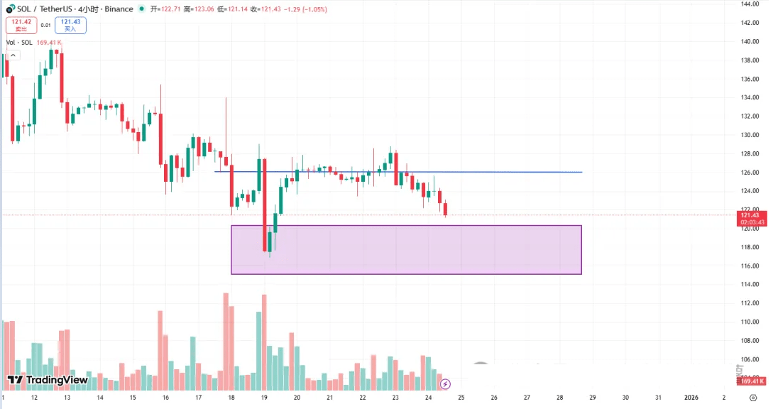 $SOL: Support is still around $120, the most annoying move would be to drop to $115 and then quickly pull back, so positions absolutely cannot be large! $126 is the dividing line for bulls and bears; only above this level is there good upward momentum.