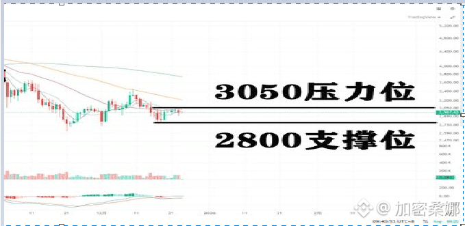 ETH 这边也没好到哪去:日线级别冲击 MA30 没站稳,还收了两根小阴线,上涨动能弱得可怜。不过下方有 2800 美元的前低支撑,短期回调空间有限。重点盯 2800 美元,守住了就会反复冲击 3050 美元前高,还是震荡行情;守不住就另说了。
