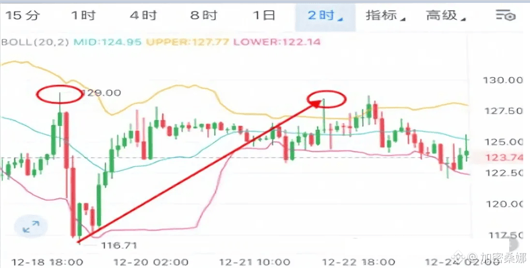 SOL 上周四跌到 116.71 美元后反弹,最高冲到 128.74 美元就歇菜了,没超过上次高点 129 美元。接下来波段高点大概率还是 129 美元,低点可能到 111.25-112.65 美元(跌破 120-116.26 美元后出现)。如果今晚或明晚意外涨到 130-134 美元,那短线底部就还是 116 美元,不用慌。