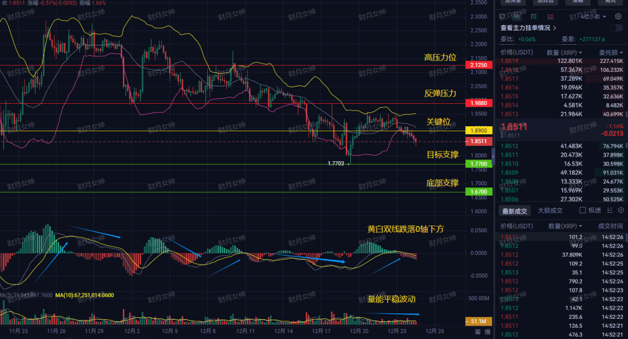 Personal opinion: This is a typical weakness; any rebound to the 1.95-2.0 area is an opportunity to reduce positions or sell high, definitely not a bottom-fishing signal. Be wary of the market continuing to dive; don't be misled by small rebounds; the trend is your only friend.