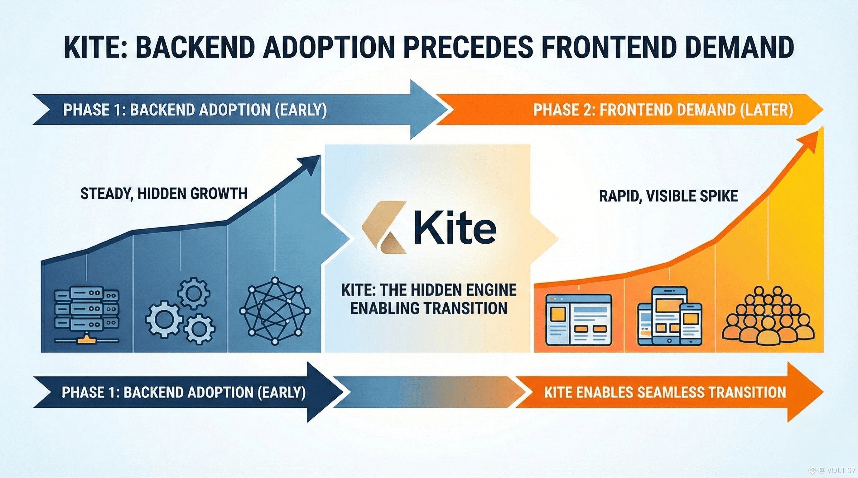This is why frontend demand may lag and why that lag isn’t necessarily a weakness. Frontends appear once the backend is stable enough to support them. No one builds consumer-facing tools on infrastructure they aren’t confident in. If KITE is being adopted first at the backend layer, that suggests builders are still in the phase of making sure it holds up under real conditions. That’s usually a prerequisite, not an afterthought.