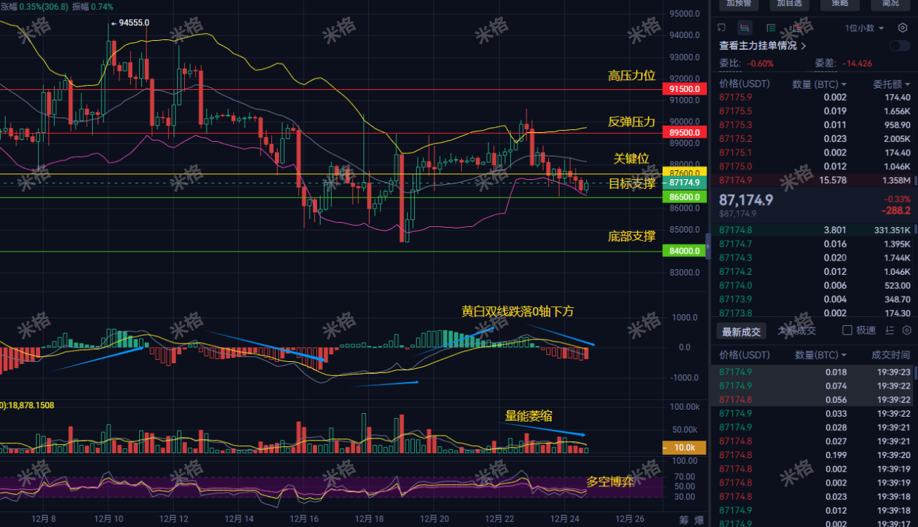 Just finished reviewing the data, my back feels a bit cold—because the real storm is not today, but tomorrow. Now BTC is hovering at 87174, but this is very likely the last calm before the storm.
