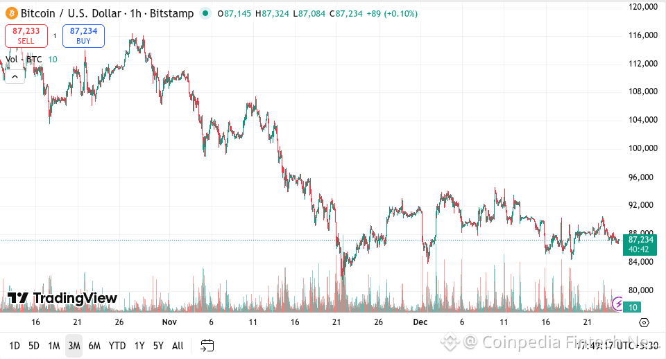 Bitcoin has been consolidating in a tight range between $85,000 and $90,000 throughout December. Analysts say low liquidity during the holidays has reduced strong price moves in either direction.