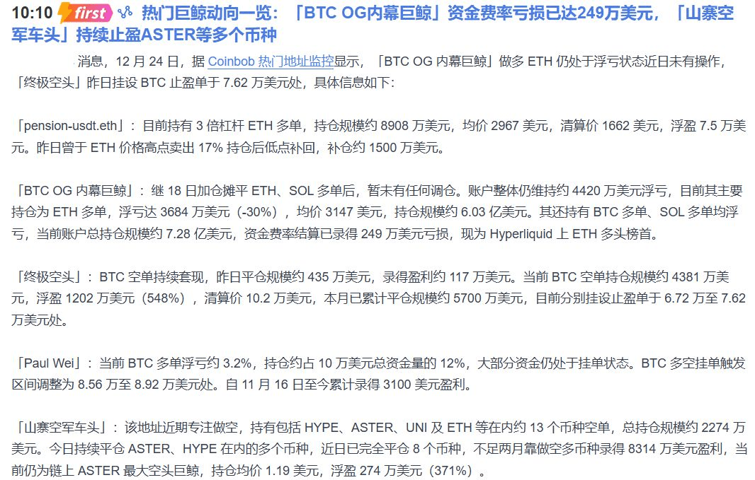 This is not a coincidence; it is a trend. At the same time, the 'BTC OG insider whale' going long on ETH has already incurred a floating loss of $36.84 million, with funding rate losses reaching an astonishing $2.49 million.