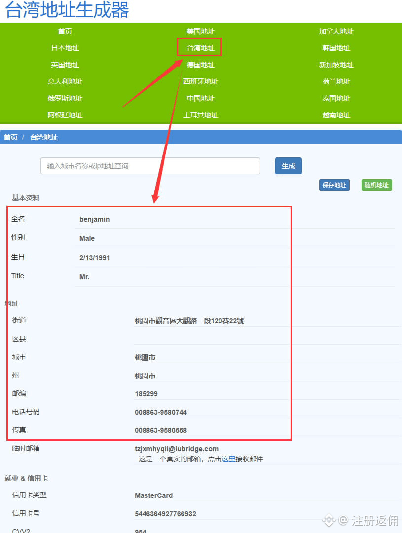 下面“账单寄送地址”需要用到虚拟地址,咱们都是国人,所以只能通过在线生成虚拟地址等信息来解决身份问题。 shenfendaquan.com 或 meiguodizhi.com