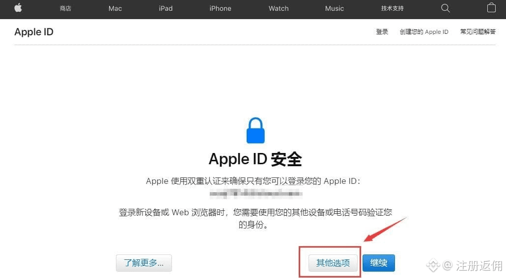 4、选择“其它选择”,如果是用手机注册的用户,不要选择继续,一定要选择“其他选项”。