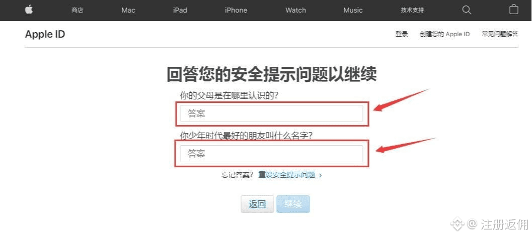 3、输入自己国内ID的正确密保问答的答案,然后点击“继续”!