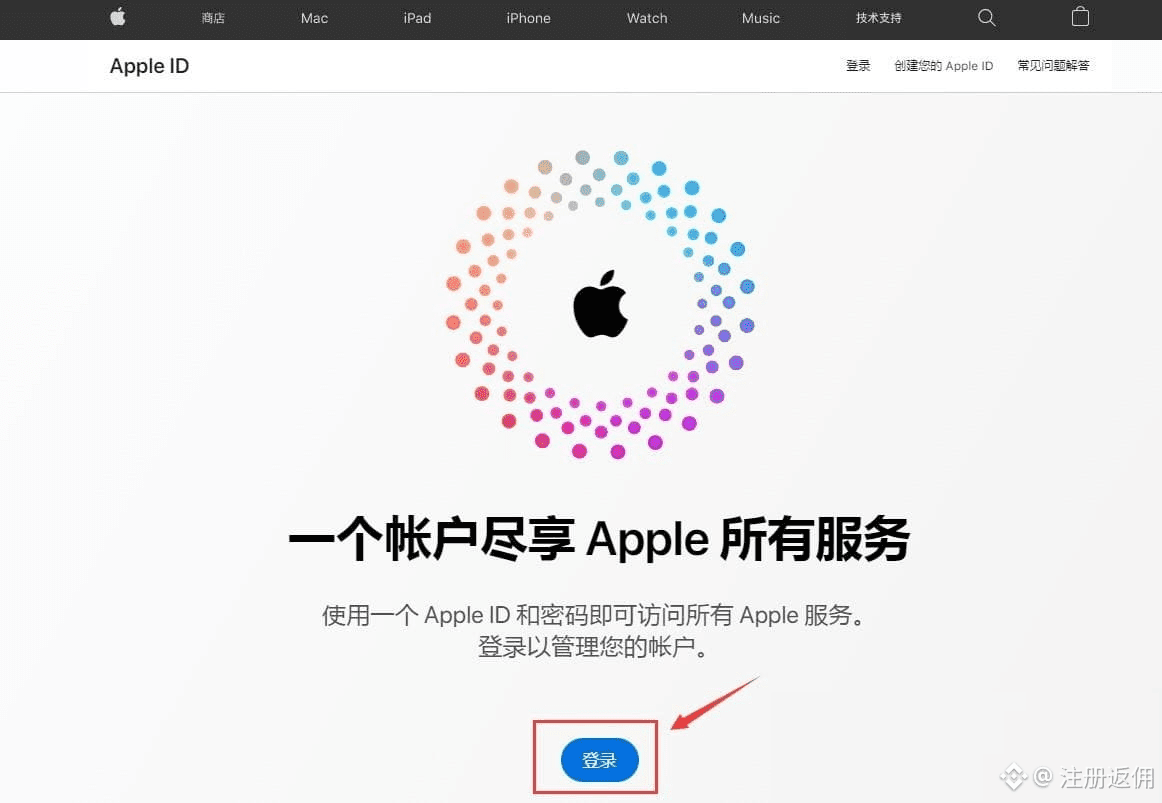 1、先进入苹果Apple ID官网,然后选择“登录”!