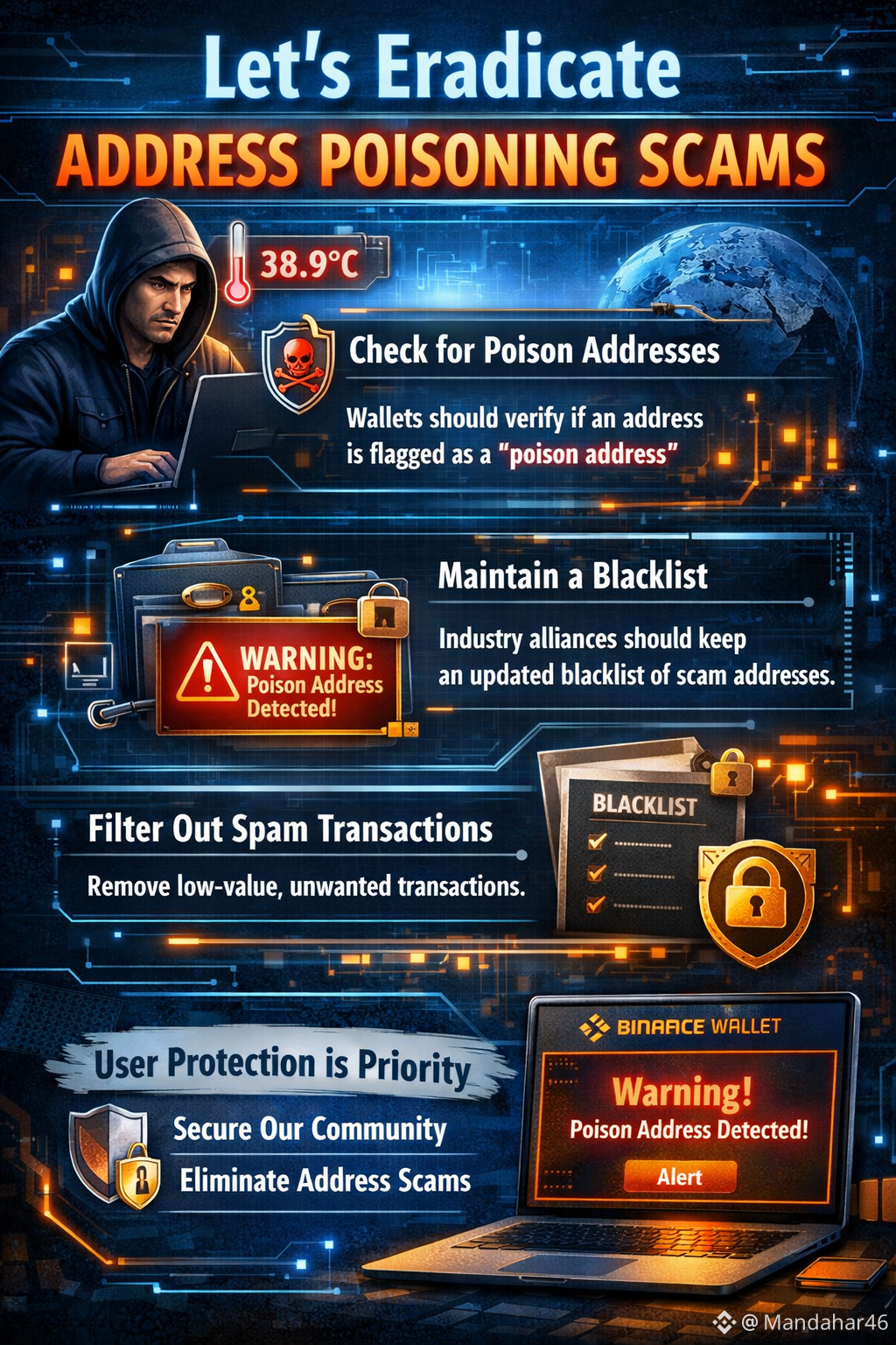 Some platforms are already moving in the right direction. For example, Binance Wallet currently warns users when they attempt to send funds to a known poison address, effectively preventing accidental losses.