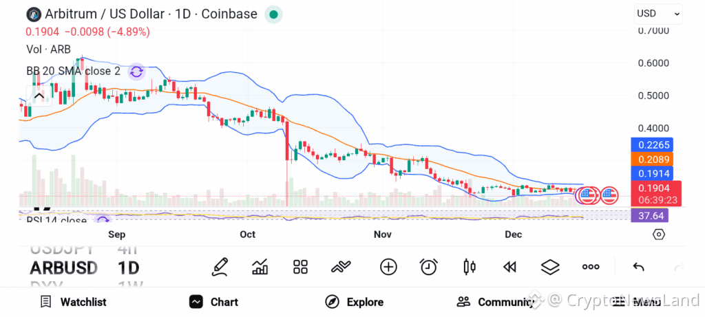 ARB trades near cycle lows despite strong fundamentals. Long-term support now acts as a critical base. Historical price behavior shows rebounds of two to three times after similar conditions. Such setups often attract longer-term accumulation. Undervaluation relative to network performance remains clear. A shift in market sentiment could unlock rapid recovery.