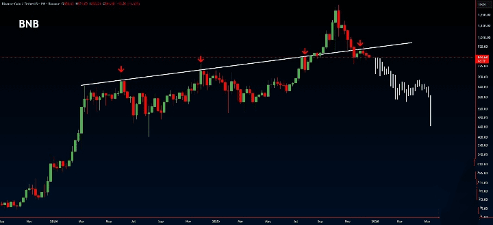 Things are looking grim because it's not just a drawing on the screen. The sentiment out there is pure fear (the index is at 27, meaning people are paralyzed). Big players pulled out nearly $189 million from Bitcoin ETFs, and when the King sneezes, BNB gets pneumonia. 🤒 Moreover, activity within the BNB Chain network has collapsed by 47% since October. Fewer people using the network means less gas burning and less demand, plain and simple.