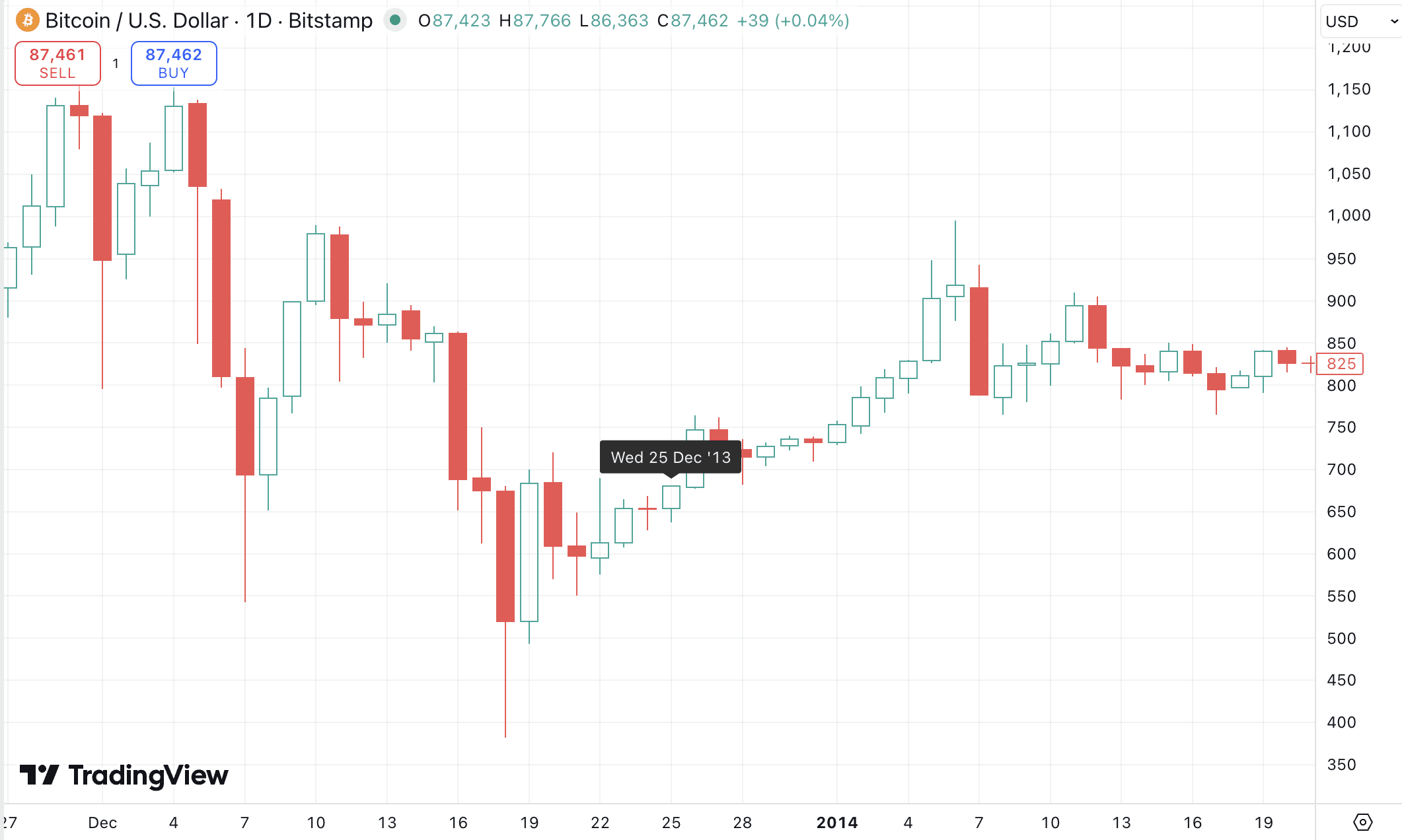 Following the catastrophic collapse of Mt. Gox (which handled 70% of trades), 2014 was a painful year of decline. Bitcoin spent Christmas bleeding out.