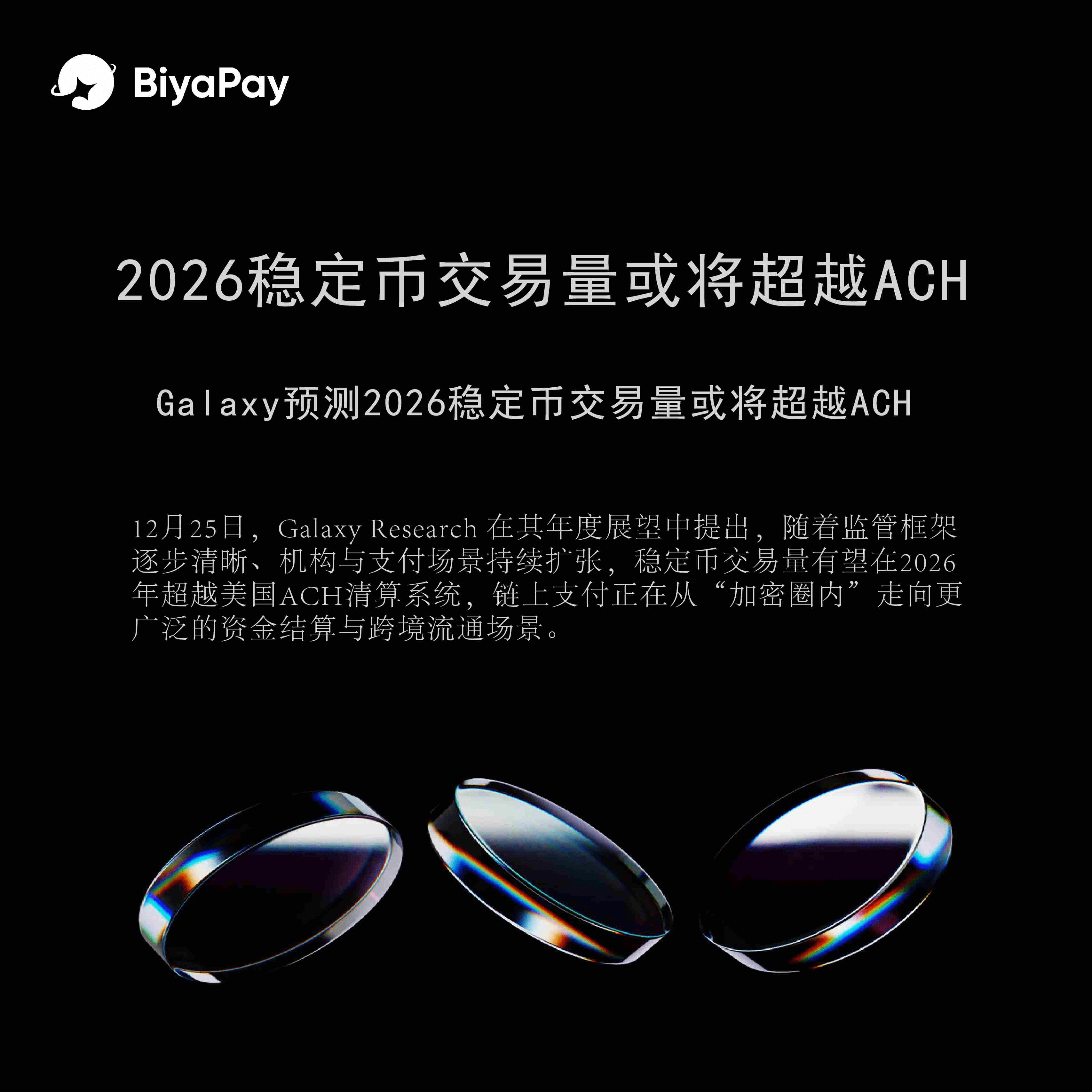 According to Shenchao TechFlow, on December 25, Galaxy Research proposed in its annual outlook that as the regulatory framework becomes clearer and institutional and payment scenarios continue to expand, stablecoin transaction volumes are expected to surpass the US ACH clearing system by 2026, with on-chain payments moving from 'within the crypto circle' to broader fund settlement and cross-border circulation scenarios.