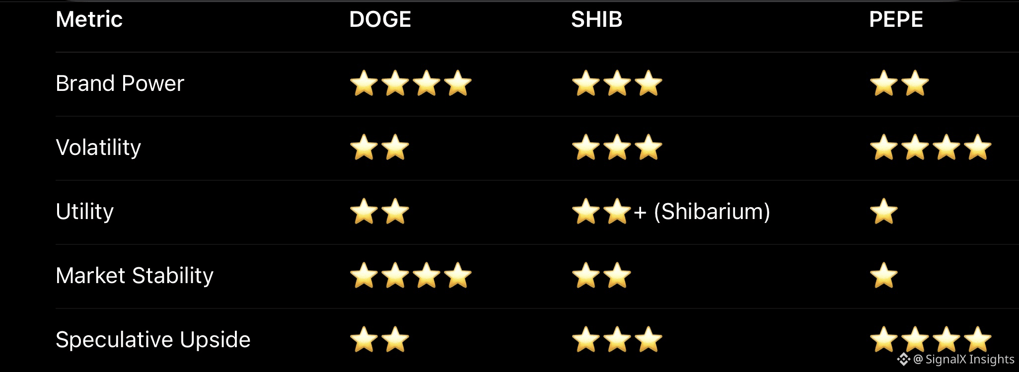 Pepe (PEPE) is the newer hype darling — higher short-term speculative volatility but also riskier and less established than DOGE/SHIB.