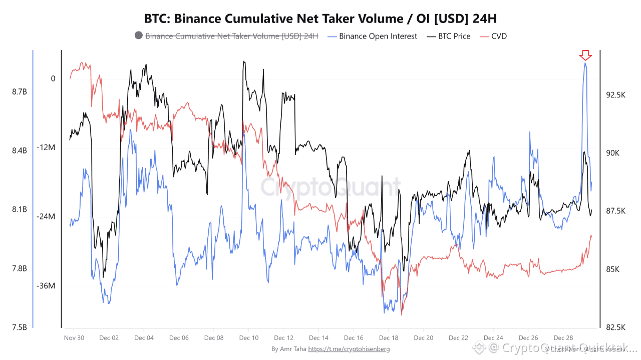 📊 BTC: Binance Cumulative Net Taker Volume / Open Interest [USD] – 24H
