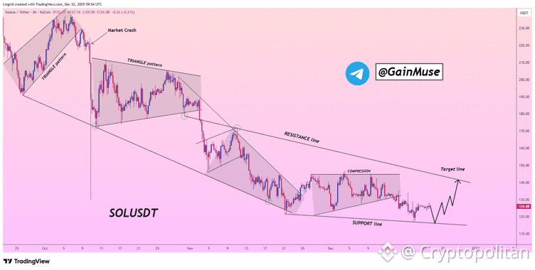 As Solana (SOL) has been volatile due to numerous trends prevailing, at the moment, Solana (SOL) is at a critical point where the prices are heavily compressed inside or around an essential support level, which usually precedes a breakout. Since SOL prices have shown a strong response to the macro-level support line, the prices are now out of the descending channel and are preparing a compression-level base, which suggests the reduction in selling sentiment and the consequent exhaustion of the selling pressure. Technically, the sentiment remains slightly positive, considering the resistance, along with the support level.