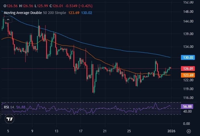 Solana is currently showing signs of consolidation around the $126–$130 range, with potential opportunities emerging from recent price movements. The structure has generally held, suggesting some level of bottoming despite short-term weakness.
