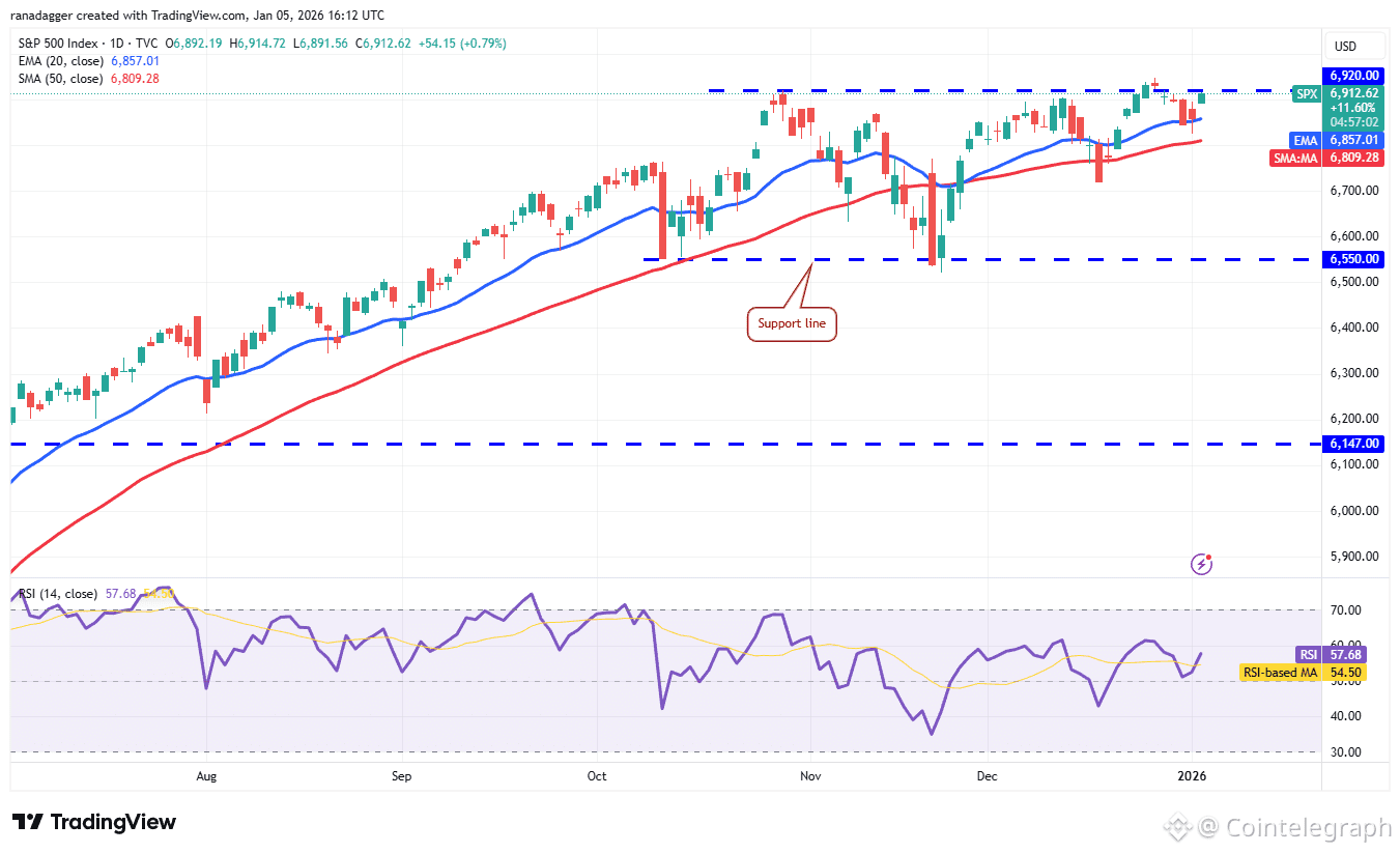 The S&P 500 Index (SPX) turned down from 6,945 on Dec. 26 but is finding support at the moving averages.