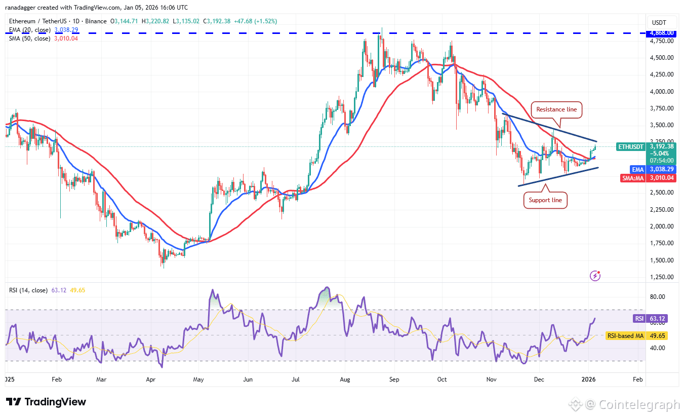 Ether (ETH) has risen to the resistance line of the symmetrical triangle pattern, indicating buying at lower levels.