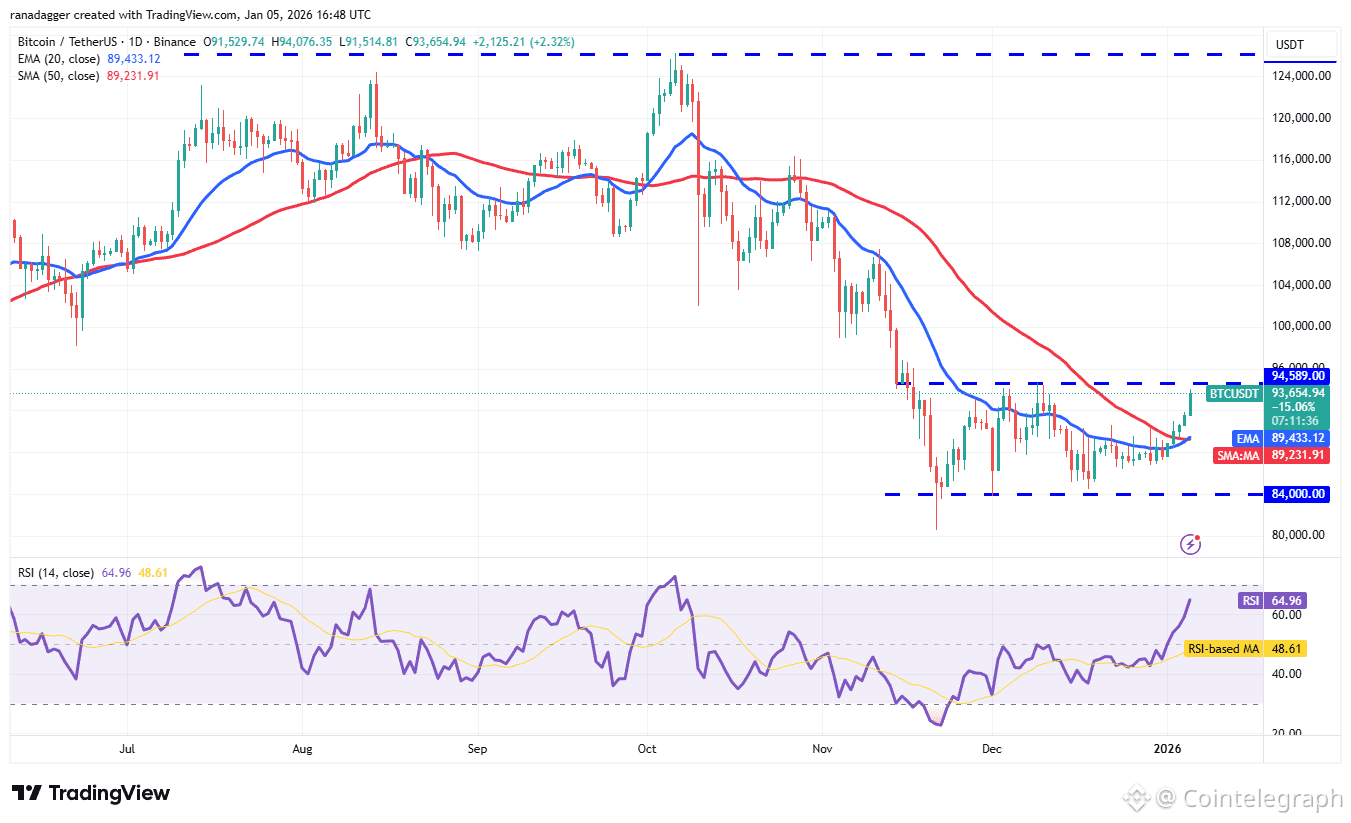 BTC closed above the 50-day SMA ($89,231) on Friday and continued its upward journey toward the overhead resistance at $94,589.