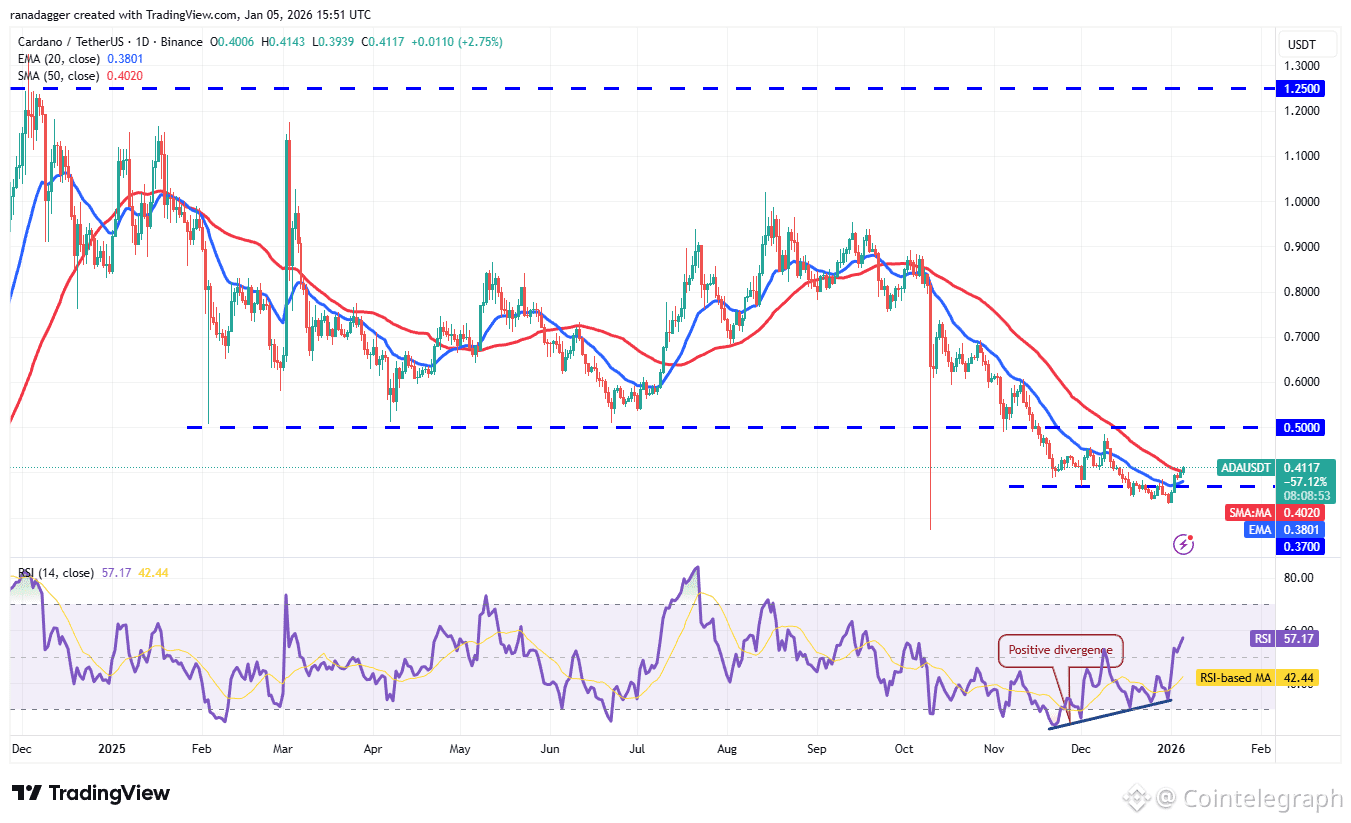 Cardano’s (ADA) relief rally has risen above the 50-day SMA ($0.40), indicating sustained demand from the bulls.