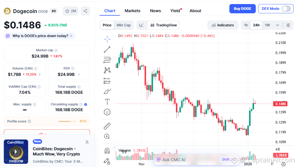 Current Dogecoin technical analysis shows DOGE moving sideways between $0.14 and $0.15, with solid support holding as the market cools after recent moves. This kind of consolidation is often seen before a bigger price push.