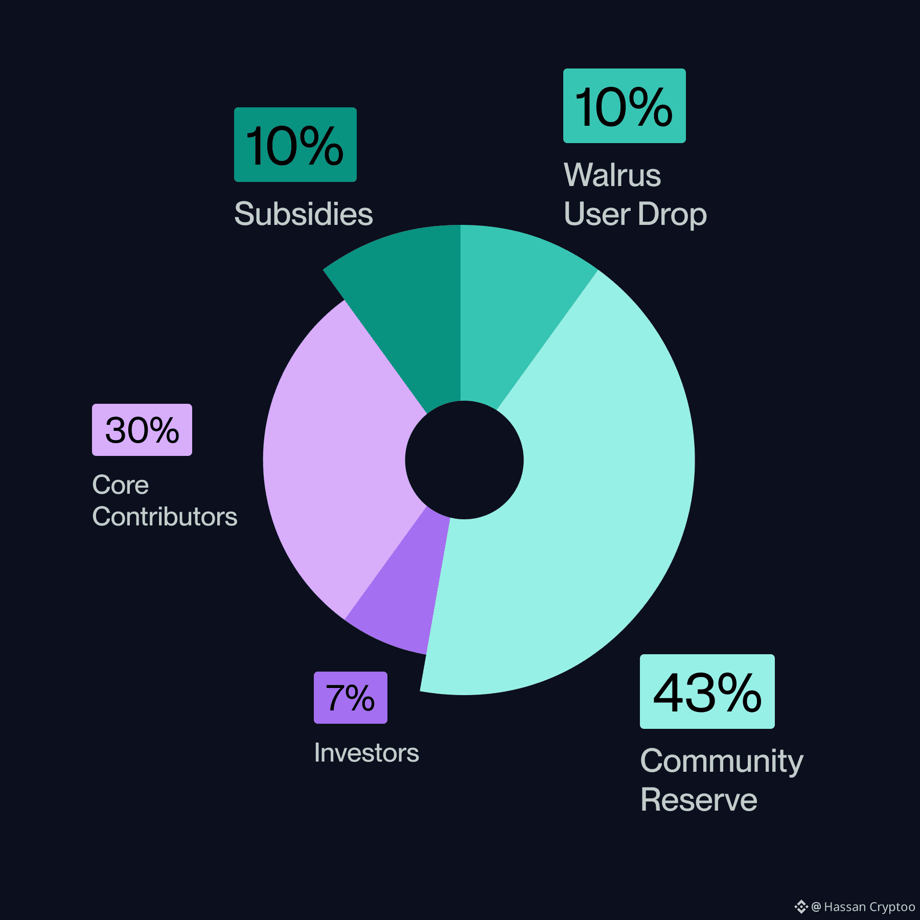 This utility is indeed powered by a distribution model that makes a pronounced statement about priorities. In their March 2025 announcement, Walrus specifically emphasized that over 60% of the total 5 Billion WAL tokens are dedicated to the community. This is not merely vague marketing. It is a specific allocation, 43% to a Community Reserve for grants and ecosystem development, 10% for a User Drop to early adopters, and another 10% for Subsidies to support node operators in the early days. When you compare this to the 30% for core contributors and 7% for investors, the weighting is quite obvious. The protocol is allocating resources to bootstrap the two sided marketplace it needs to survive, users who need storage and nodes that provide it. The 10% subsidy pool, in particular, is a tactical war chest.It is designed to reduce the cost for early users while makes sure, node operators can build practical models before the organic fee market matures. This is not just fair launch but a calculated go-to-market strategy funded by the token treasury itself.Of course, a network that stores precious data needs security, and here the tokenomics effectively integrate staking in a way that directly impacts network health. Walrus employs a delegated staking model. This means that any token holder, not just node operators, can indeed stake their WAL to a specific storage node. This stake acts as a vote of confidence and a source of security. Nodes compete to attract this stake because it governs how data is assigned to them. In return, nodes and their stakers earn rewards. The whitepaper and website of the project point to a future where "slashing" is enabled, meaning poor performance or malicious action by a node could lead to a portion of the staked tokens being penalized. This aims to fully align the financial interests of token holders with the reliability of the network operators they choose to back. It turns passive token holding into an active, though risk managed, participation in network security.