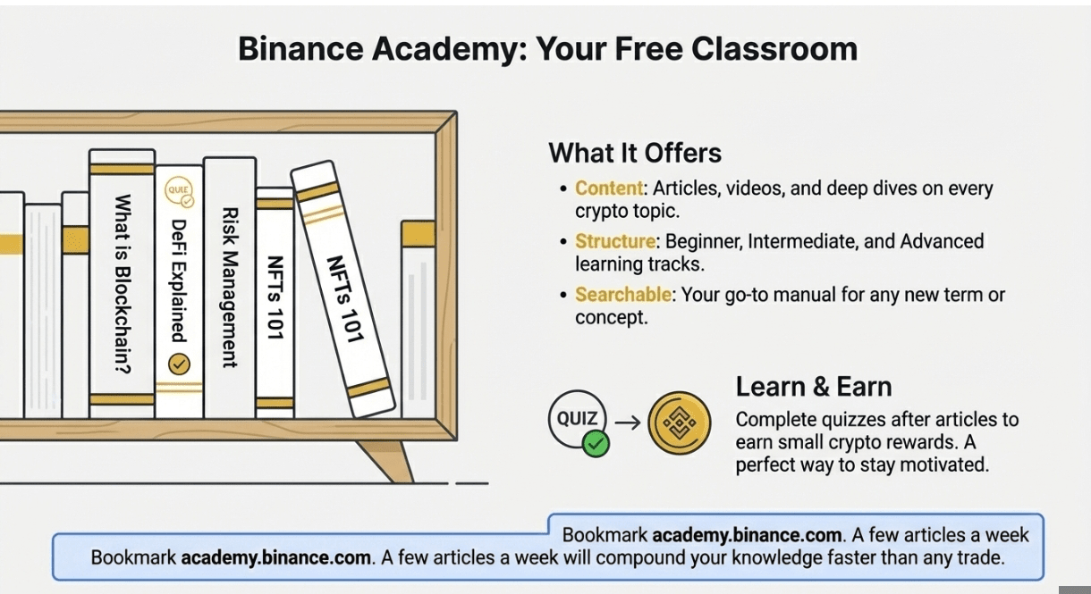 Binance Academy hosts articles, videos, and quizzes that reward new users with token snippets. The Beginner Track covers basics like “What is blockchain?” while Intermediate lessons dive into topics such as DeFi and risk management.