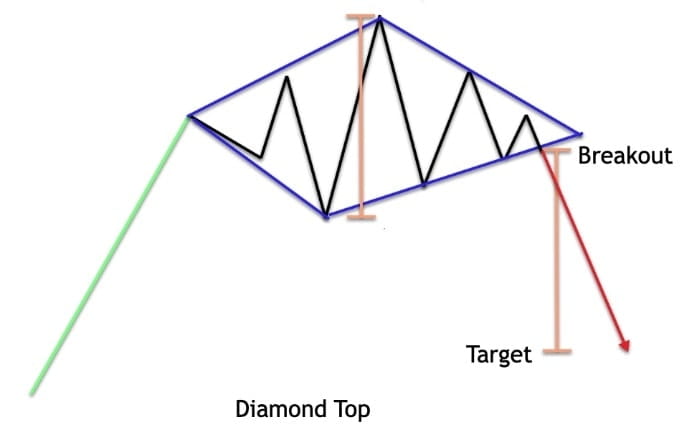 The diamond pattern most often occurs after a prolonged trend phase. When this occurs in the context of a bullish market, the pattern is called a diamond top or bearish diamond pattern due to its bearish significance. Conversely, when it occurs in the context of a bearish market, the pattern is called a diamond bottom or bullish diamond pattern due to its bullish significance.
