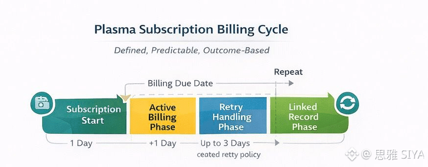 Plasma takes subscriptions as a continuation of settlement discipline, as opposed to a scripting problem. Plasma considers subscriptions as formal payment relationships, rather than viewing them as an isolated transaction, per charge. Every cycle has specific settlement periods, expected execution policies, and apparent results in case of alteration of circumstances. This eliminates uncertainty to the platforms and users.