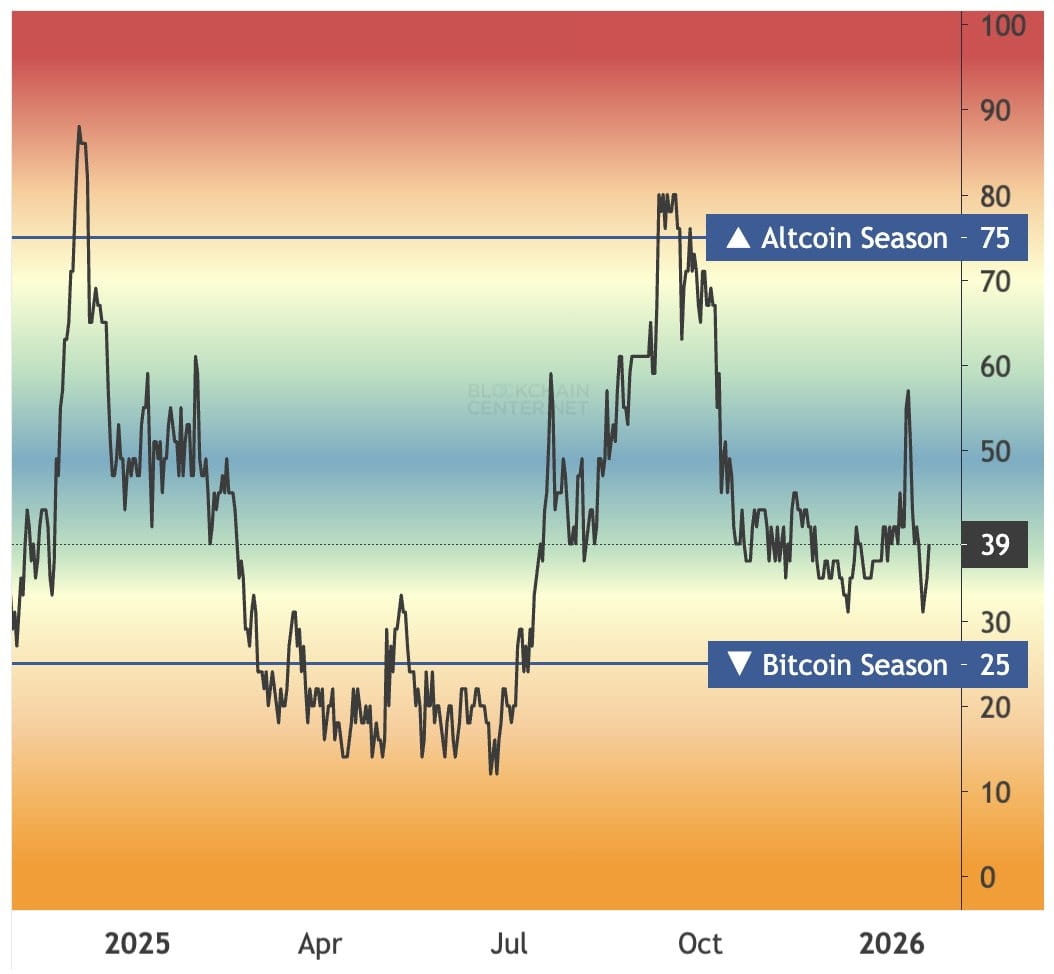 The Altcoin Season Index is decreasing not because 'alts are weak', but because the market is choosing to defend. In the context of the Fed being drawn into political disputes, tariffs returning, and macroeconomic stories becoming more tense, the outflow of money from alts is a very natural reaction.