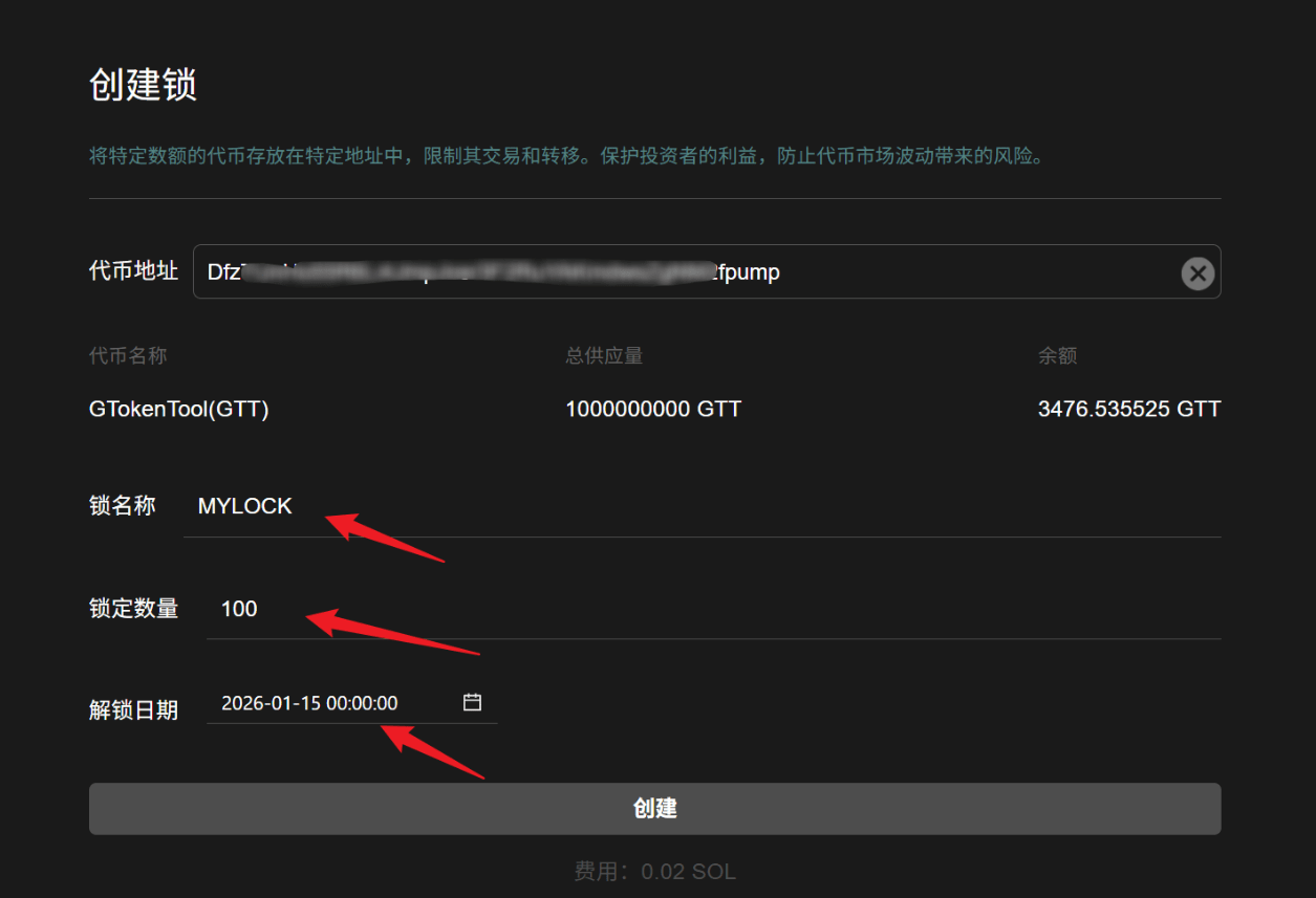 (For personal management only, will not affect on-chain data)Lock amount:Enter the amount of tokens you want to lock