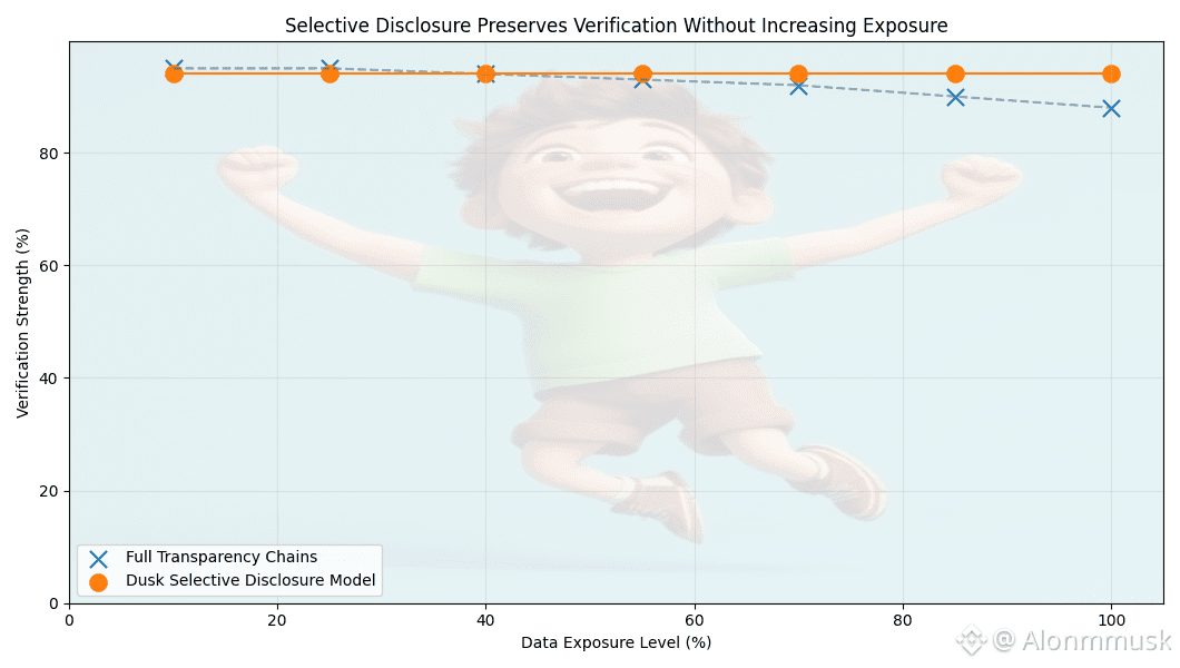 This is where Dusk’s design starts to feel more grounded. The system is built around zero-knowledge in practice, proofs and selective disclosure, not as optional features, but as core mechanics. In simple terms, zero-knowledge proofs let you prove something is true without revealing the underlying data. You can show that you meet a requirement, passed a check, or own sufficient assets, without exposing balances or identities. Selective disclosure builds on that by allowing information to be revealed only to parties who are authorized to see it, like regulators or auditors, without turning the entire ledger into a public dossier. Together, this generally allows smart contracts to enforce financial rules on-chain while keeping sensitive details private unless they’re explicitly required.