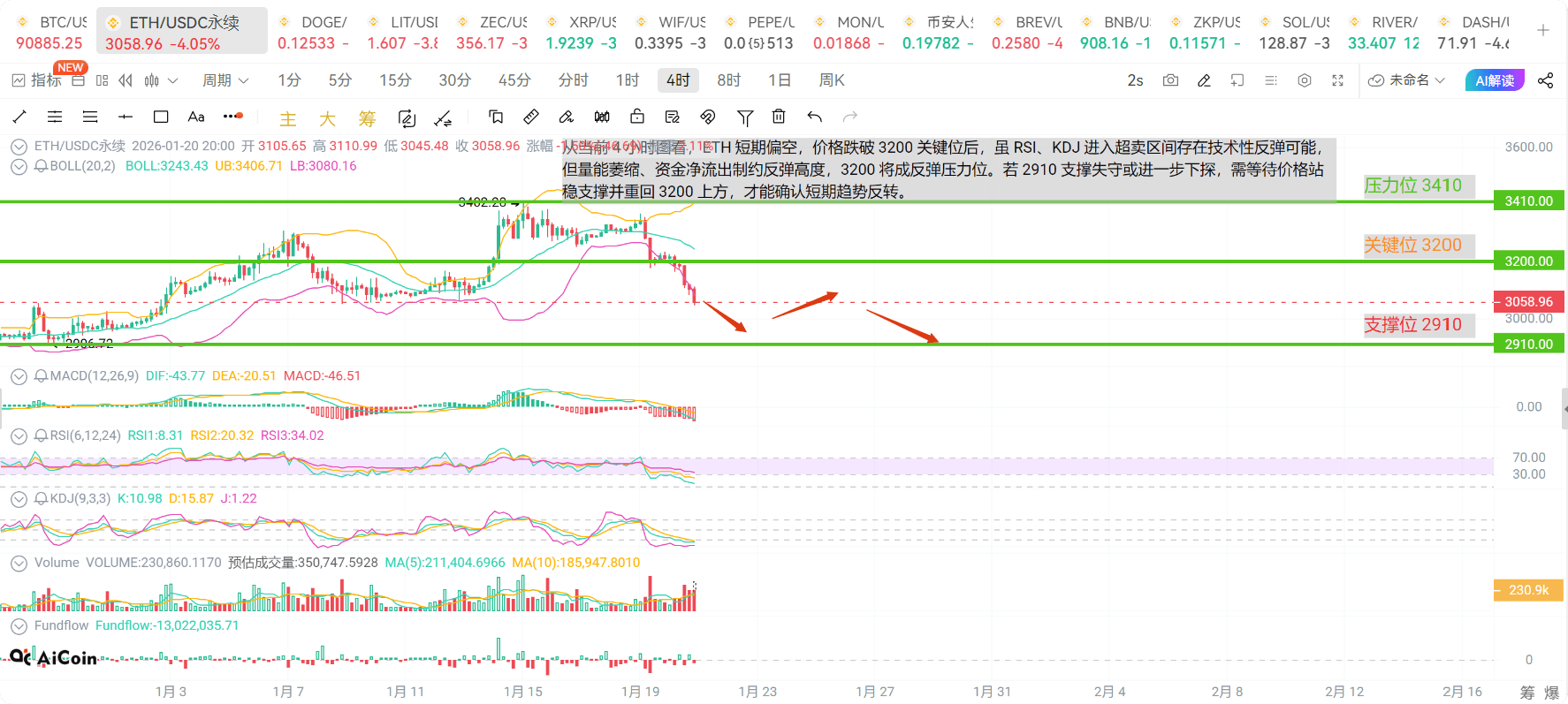 The technical structure is biased towards bearishness, but extreme overselling suggests a possible short-term rebound. The key is whether it can reclaim 3200 with volume; otherwise, it will continue to probe lower, with a target of 2900. Want to know at which specific point to enter and where the safest stop-loss is set? Captain Village has already provided reminders; if you want to follow along, become a Captain villager!
