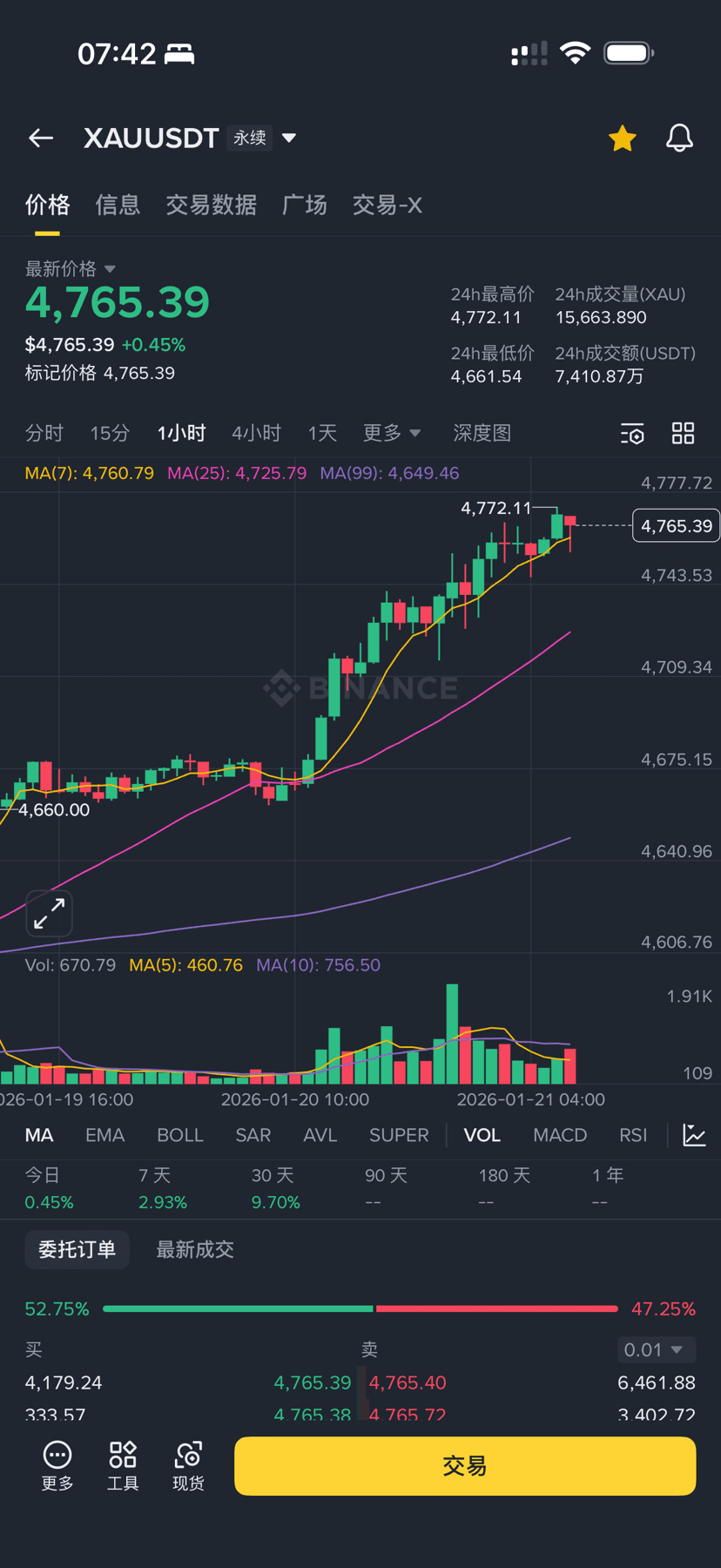 Gold once again broke new highs last night, reaching 4765 dollars per ounce, and the rabbit noticed it's still rising.