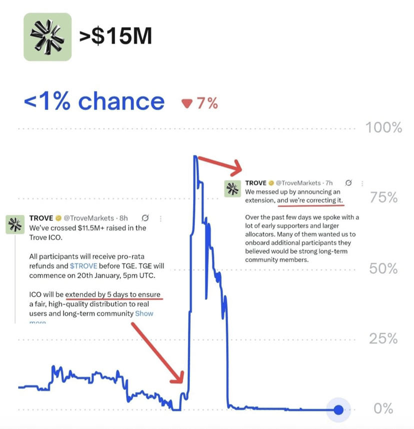 • Betting on whether Trove's ICO will end or not
