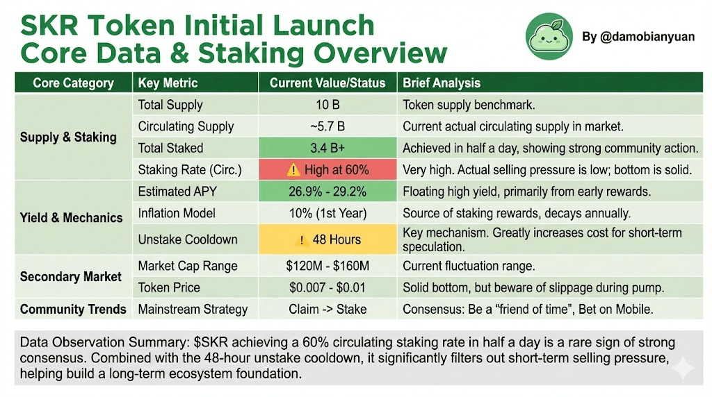 3. Opportunities and risks in the secondary market. I am currently watching $SKR, with a market cap swinging between 120 million and 160 million dollars.