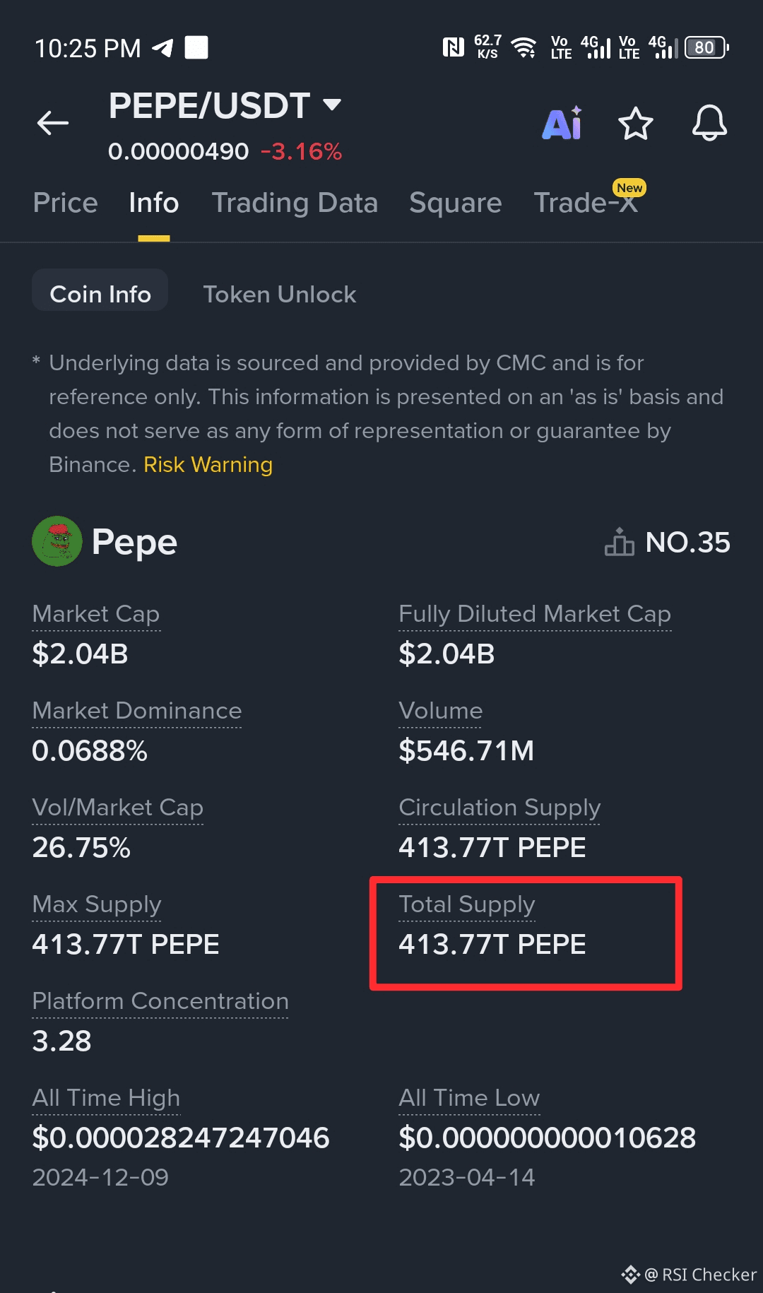 PEPE supply is more than 415Trillions so it need 415 Trillion $ as market cap to make price at 1$ while it's current market cap So 1$ is almost impossible
