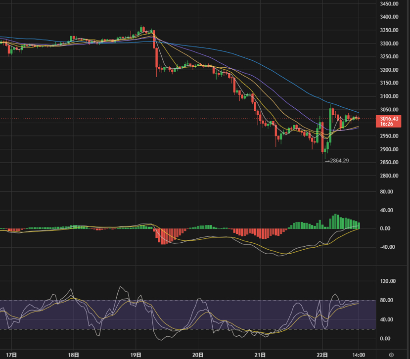 Affected by BTC, ETH also experienced a strong rebound last night, but then showed weakness without sustained upward movement, however, it has turned into a testing trend.
