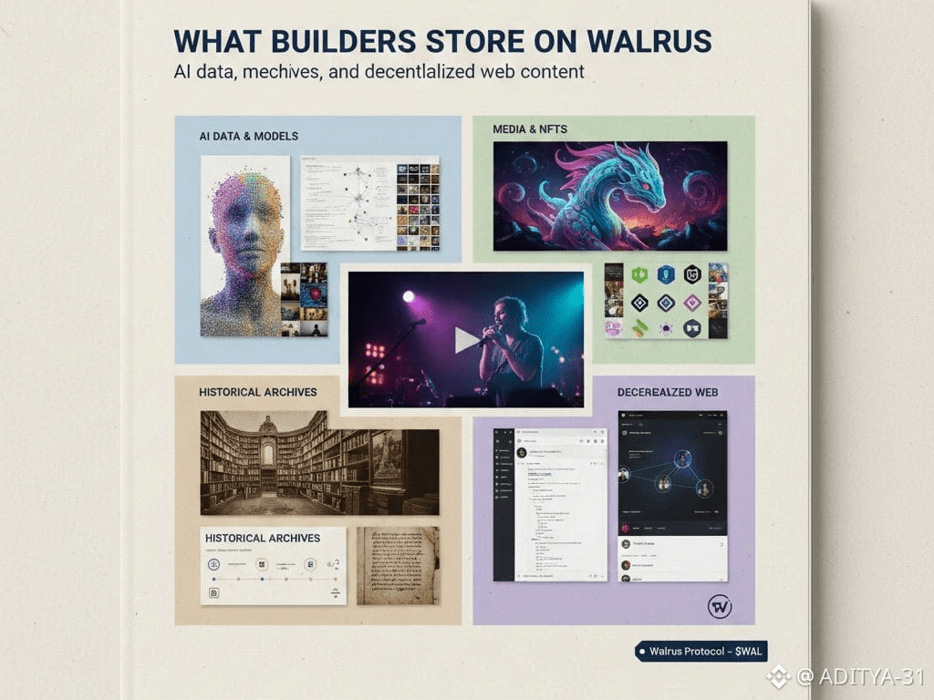 Taken together, these examples demonstrate Walrus as more than a raw blob store. It serves as a practical foundation for data-heavy applications — from AI and media to decentralized archives and Web3 front ends — where decentralization, availability, and verifiability are required components of the architecture.