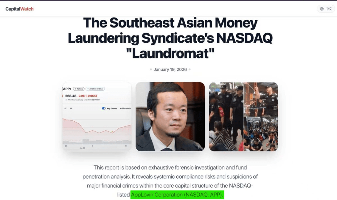 On the Nasdaq screen, the green stock price of $APP (AppLovin) once attracted countless investors, touted as 'the AI-driven future of mobile internet.' But a 36-page forensic investigation report tore apart its grim facade — it is not a tech unicorn but a 'money laundering machine' for Southeast Asian criminal groups.